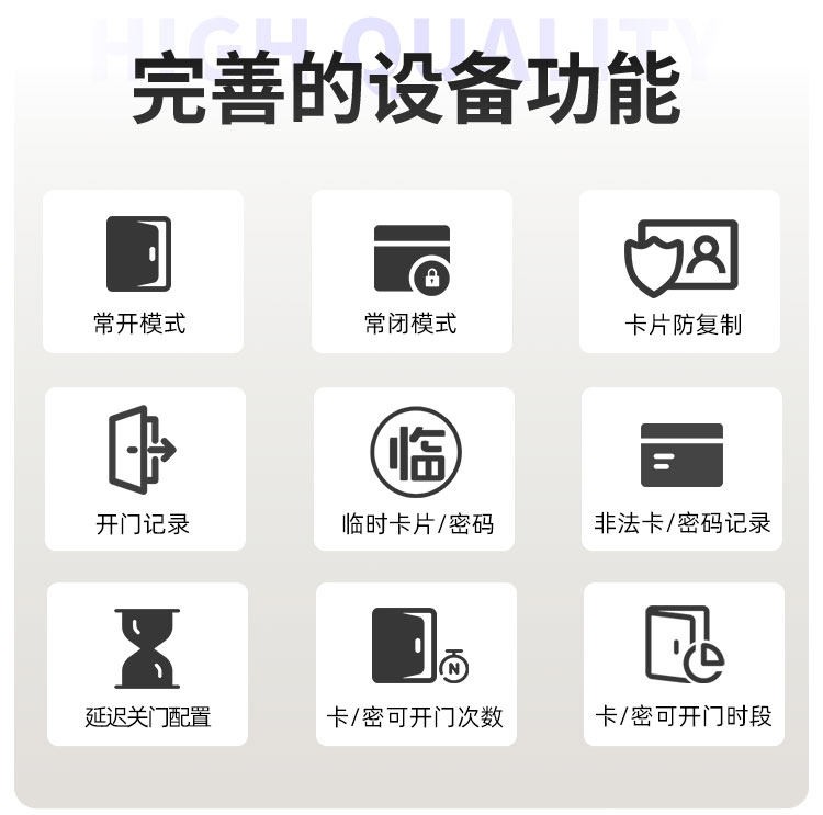 萍乡这款智能门锁提供室内门锁和防盗门锁两种选择,其中室内门锁尺寸为 2806521mm,适配 5050 锁体;防盗门锁尺寸为 3657021mm,适配 6068 锁体,可满足不同场景的安装需求。它采用铝合金一体成型搭配钢化玻璃面板打造,兼具坚固耐用的品质与简洁美观的视觉效果。门锁支持蓝牙无线通讯,解锁方式丰富多样,密码、卡片、蓝牙、钥匙四种方式随心选择,满足不同使用习惯与应急需求。其工作温度范围为 - 20~70℃,能适应多数地区的气候条件,采用碱性电池供电,安装更换便捷,是兼具安全性与实用性的门锁选择。